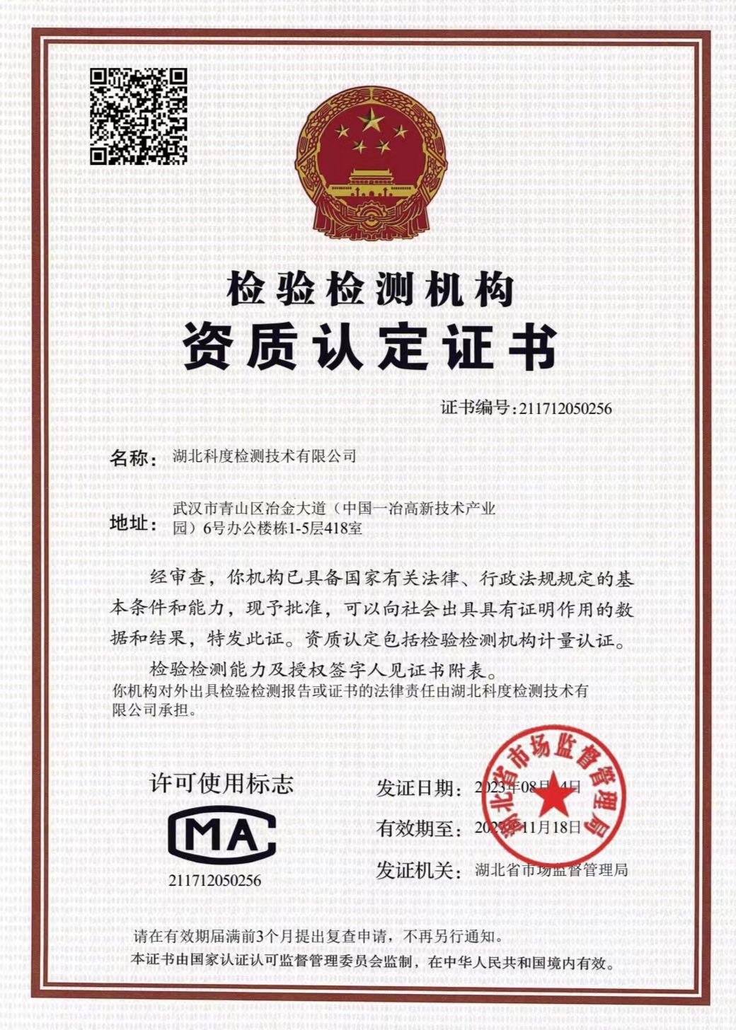 湖北科度檢測技術(shù)有限公司是一家專業(yè)從事環(huán)境類及相關(guān)領(lǐng)域檢測的第三方檢測機構(gòu),公司已通過湖北省市場監(jiān)督管理局CMA計量認(rèn)證,可以面向社會出具權(quán)威CMA檢測報告。 我公司實驗室嚴(yán)格按照國家標(biāo)準(zhǔn)建設(shè),擁有一大批國內(nèi)外先進儀器設(shè)備及現(xiàn)代化配套設(shè)施,并有經(jīng)驗豐富的中高級專業(yè)技術(shù)人員和嚴(yán)格的實驗室質(zhì)量保證體系為項目運作提供強力支撐。 作為第三方檢測機構(gòu),公司始終以高度的社會責(zé)任感經(jīng)營企業(yè),以“公正、嚴(yán)謹(jǐn)、高效”為宗旨,依托專業(yè)的技術(shù)實力為客戶提供專業(yè)優(yōu)質(zhì)檢測服務(wù),受到政府、企業(yè)和社會各界的廣泛關(guān)注和認(rèn)可。